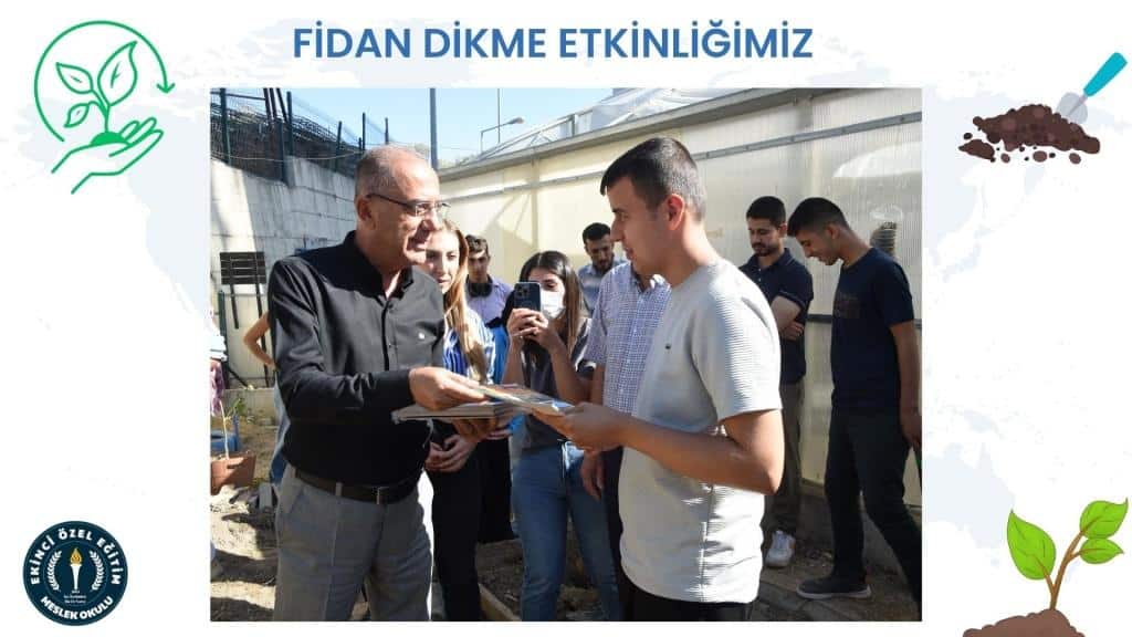 Etkinliğimize katılan Belediye Başkanı Sayın İbrahim Naci Yapar, öğrencilerimizle birlikte okul bahçemizde bulunan Sevgi Bahçesi'ne fidanları dikti ve ilk can suyunu verdi. Başkan Yapar, dikim işleminin ardından öğrencilerimize çeşitli hediyeler takdim ederek ikramlarda bulundu.
