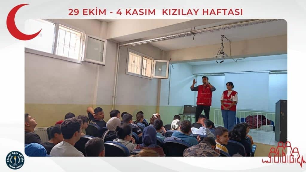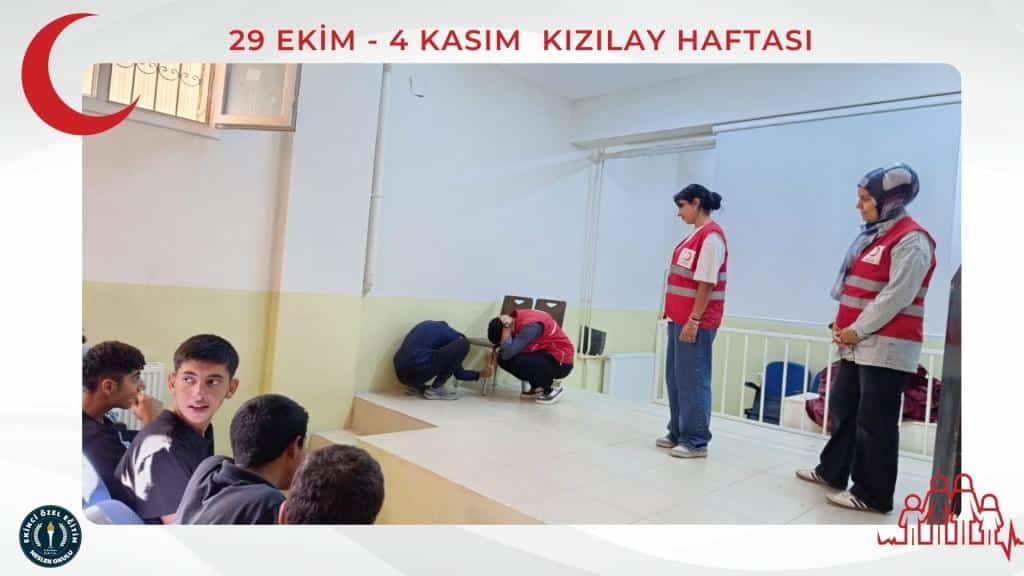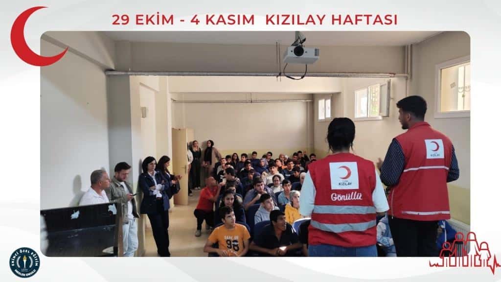 Okulumuz, Kızılay Haftası (29 Ekim - 4 Kasım) kapsamında çok anlamlı ve eğitici bir etkinliğe ev sahipliği yaptı. Türk Kızılayı gönüllüleri, öğrencilerimizle bir araya gelerek hem hayati bilgiler paylaştı hem de onlara neşeli anlar yaşattı.